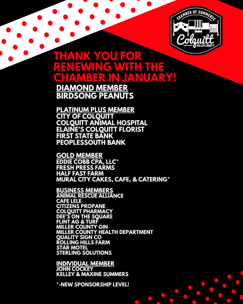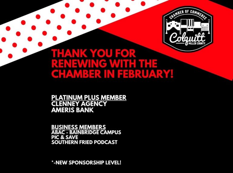 We appreciate all of our members, especially those who reinvest year after year! Thank you to our members who renewed their investment in Colquitt-Miller County in January 2026.
